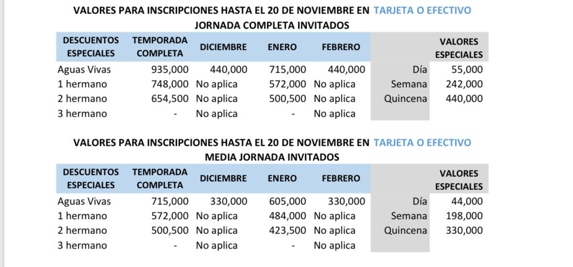 A continuación las tablas de referencia. Podes elegir el plan que se adapta a tus necesidades y comprar tu pase a la colonia por nuestra web!